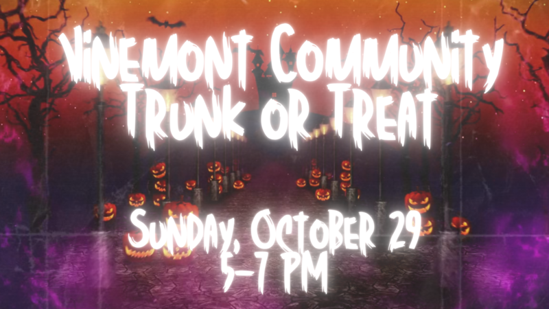 Vinemont Community Trunk or Treat is Sunday, October 29 from 5-7 PM.